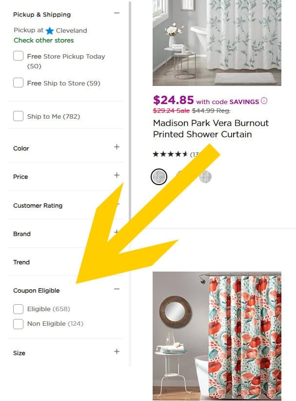 You can also sort what you’re shopping for by whether or not it’s coupon eligible or not – just scroll down the sidebar until you reach the Coupon Eligible option. Click COUPON ELIGIBLE items to shop those brands exclusively.