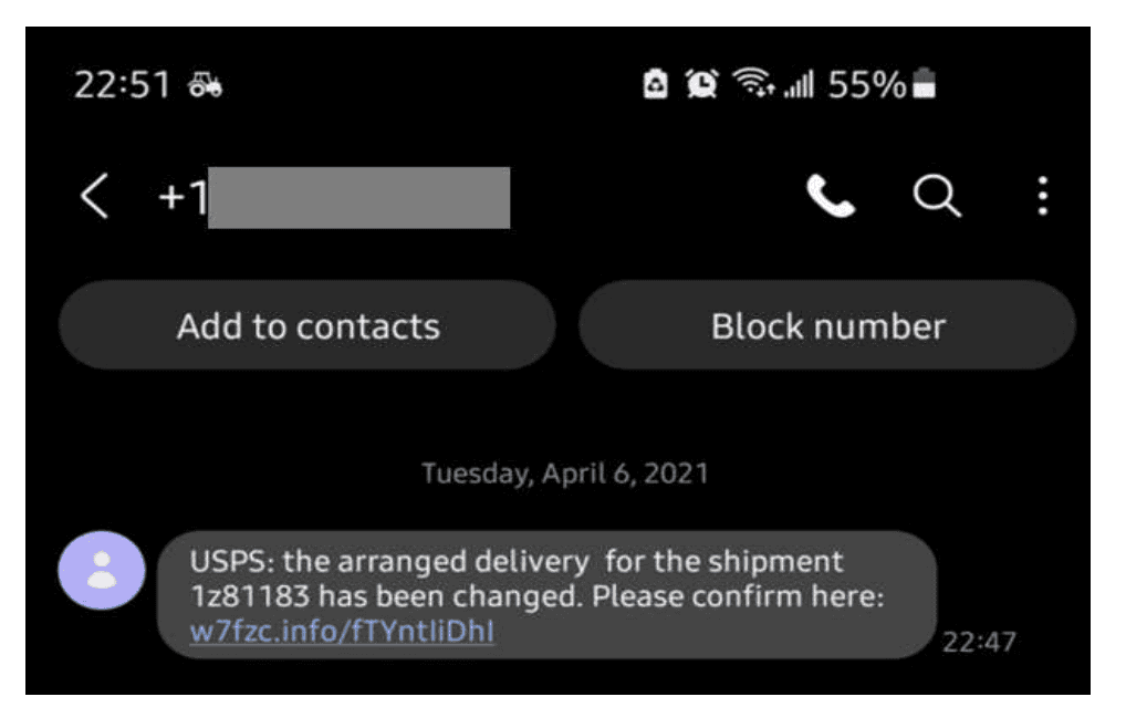 2. Phishing Texts/Emails from Shipping Companies