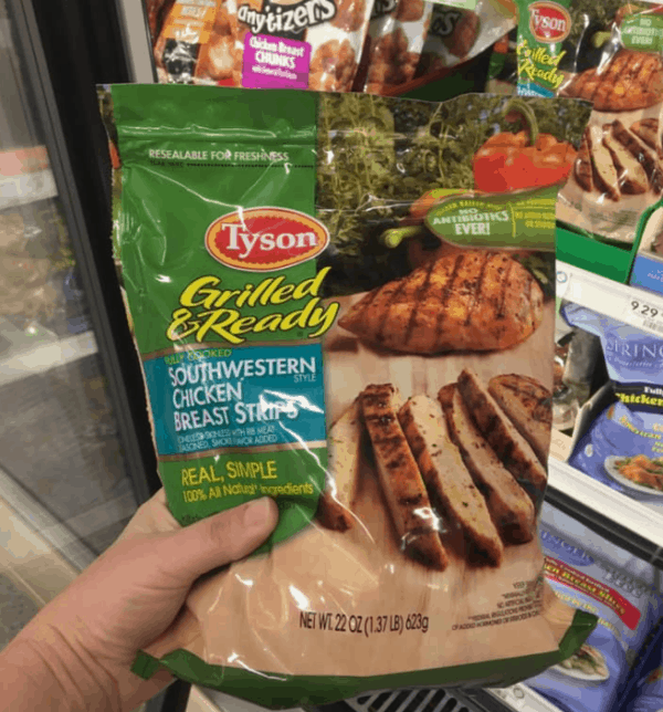 A bag of Tyson Grilled Chicken strips is $10 at Walmart right now for 1.37 lbs. (That’s $7.26/lb)
