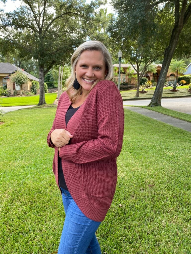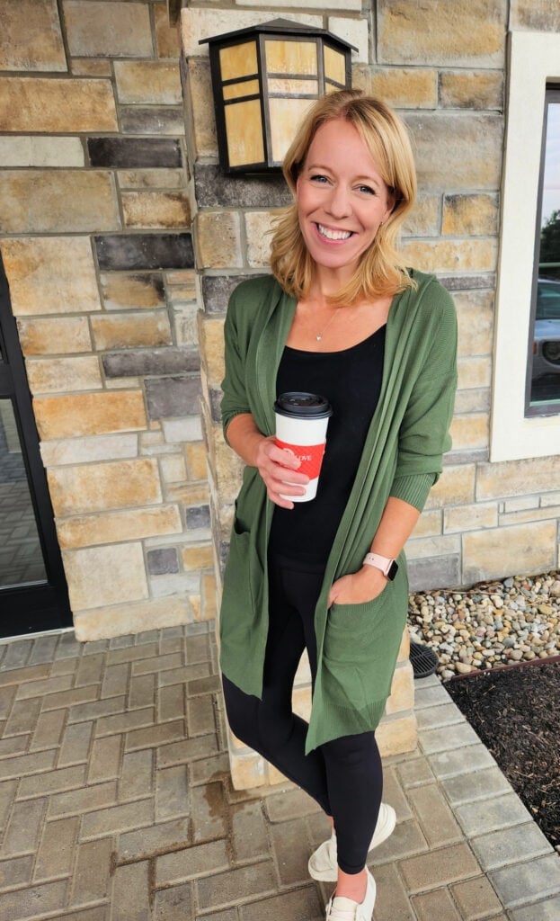 I absolutely love this new cardigan. I love the color and the way it fits, I’m kind of short so I love that it isn’t too long but it’s just long enough to wear with leggings or work out pants if needed. It’s great to pair with a cute leggings and run errands or nice jeans and cute shoes for a night out. It’s nice and cozy but not too hot, hello Florida 🙂 . I can’t wait to add it in to my wardrobe and it might be a must have in more colors now that I’ve tried it!