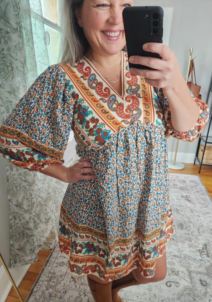 Jamie here – I got this dress in the Apricot and like it so much I ordered in the teal as well. I think it would be SO cute for country music concerts, especially with cowboy boots!