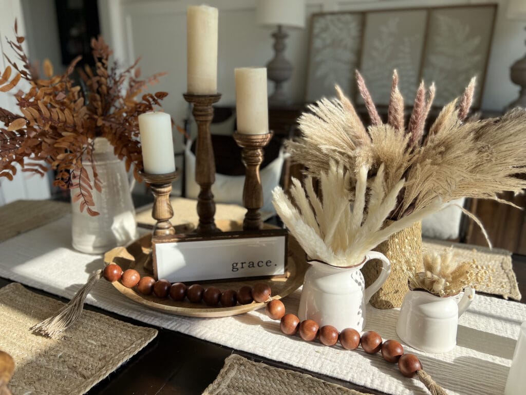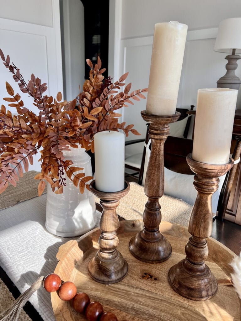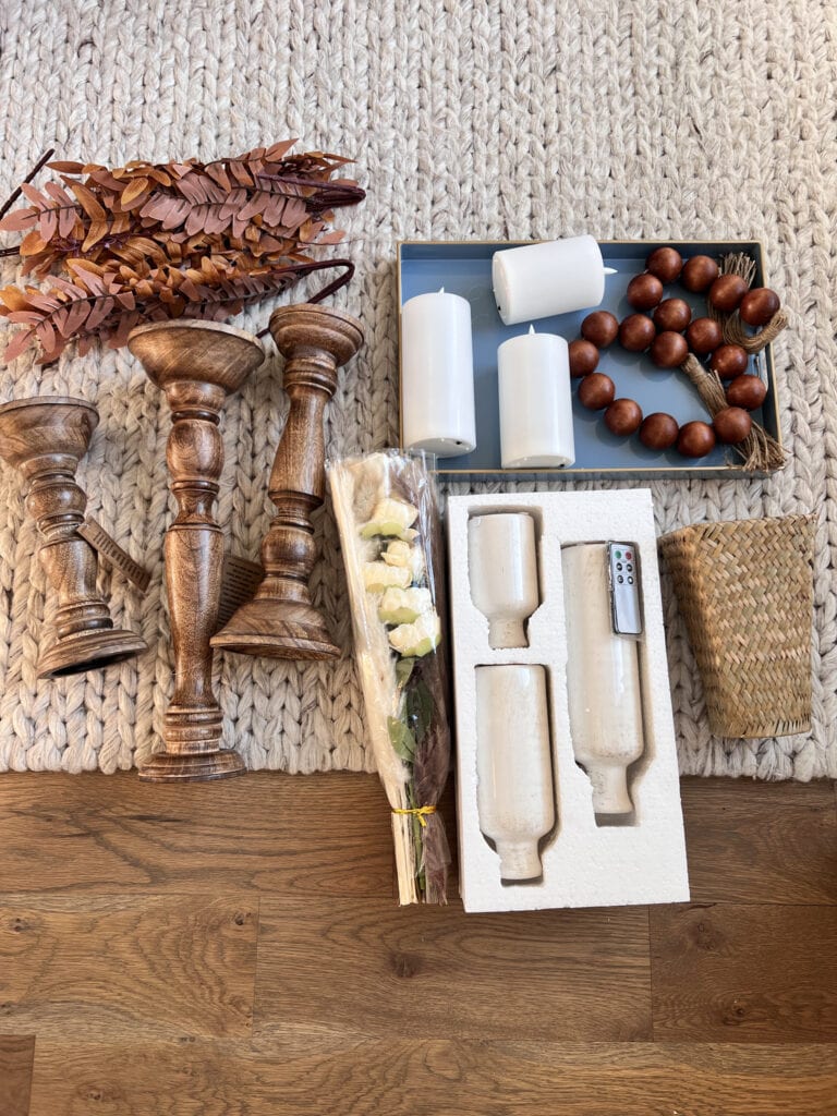Tip: if you can only choose 3 things, the leaves, wooden candle holders and bead garland are my top 3 picks!