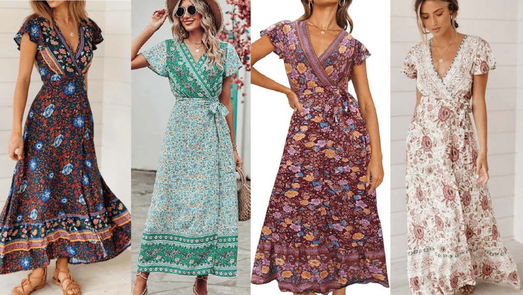 This dress has a ton of great reviews – the flattering wrap style fits any body type and is kind to love handles and muffin tops alike 🙂 It’s long and flowy so makes for a great beach/vacation dress. This is a true WRAP dress, so you’ll want to wear a slip or bike shorts under it if you don’t want to risk the wind blowing open the two sides of the skirt.