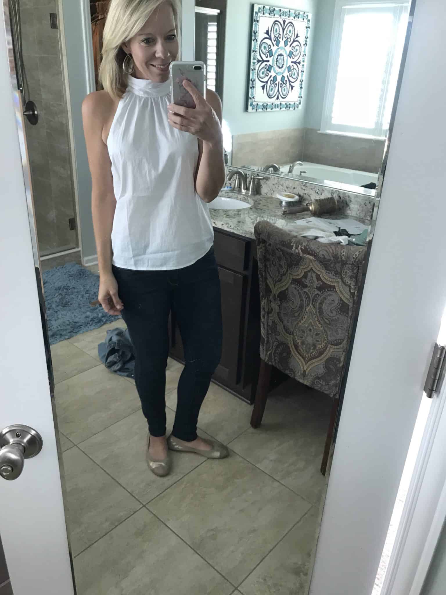 White Kerianne Tie Back Halter $48 or $36 if you keep all five items after 25% off savings – I kind of like this one but don’t think I’ll really wear it? My 15 year old wants to try it out so we’ll see . . .