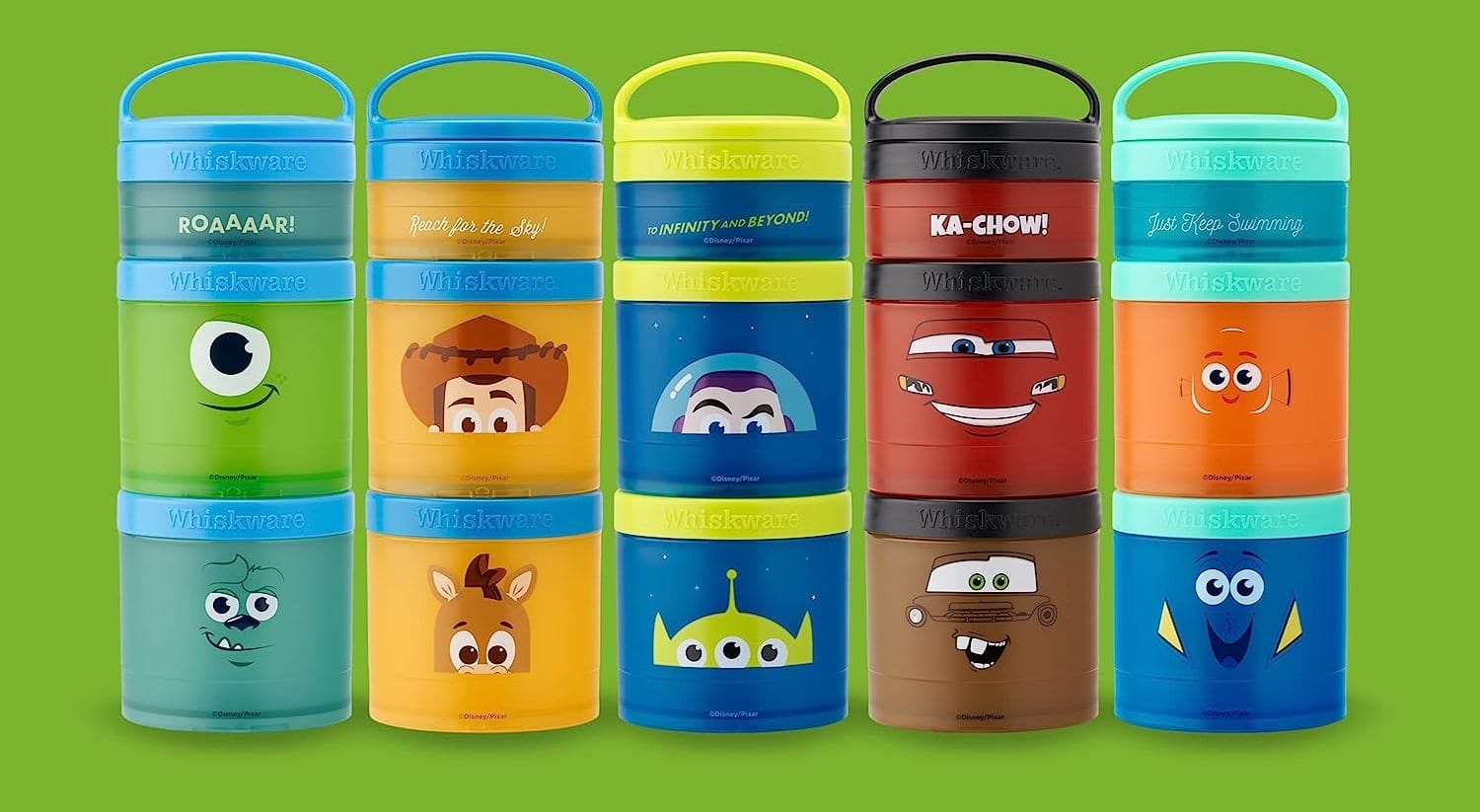 Some of the more popular styles like Woody and Frozen are sold out on the Whiskware website, but you can also grab them on Amazon (note that these licensed character snack containers are a bit more than the solid and generic colors).