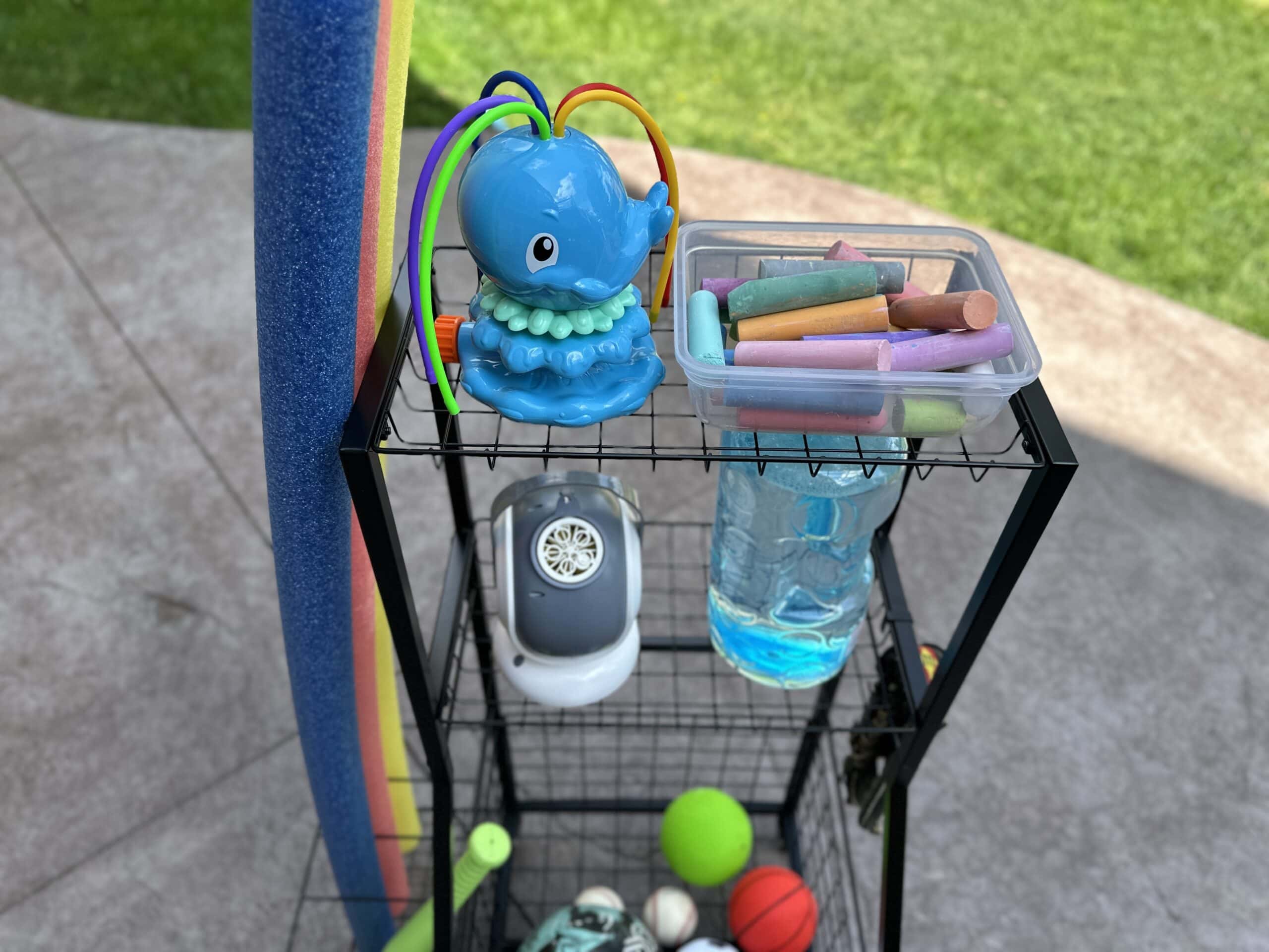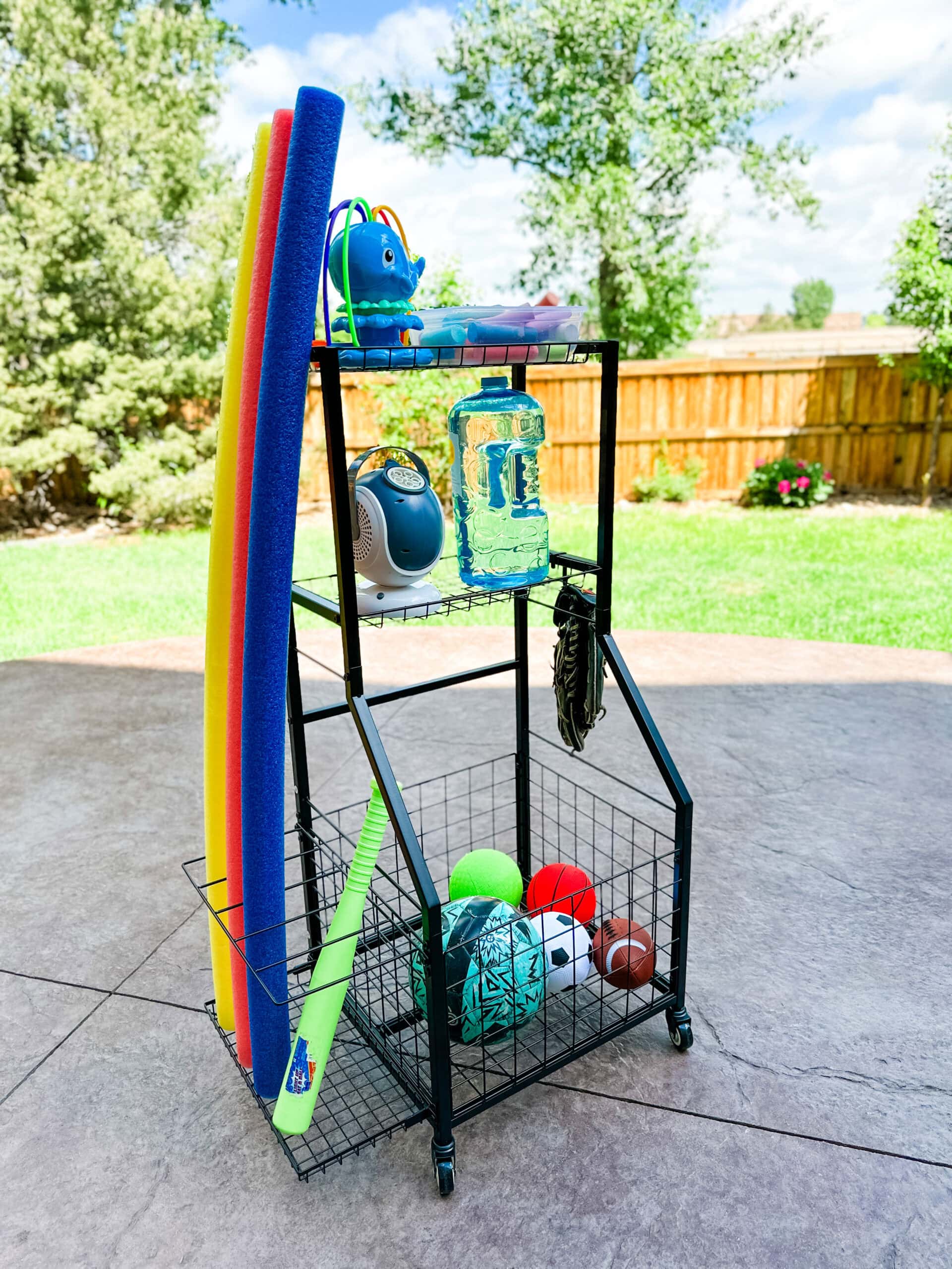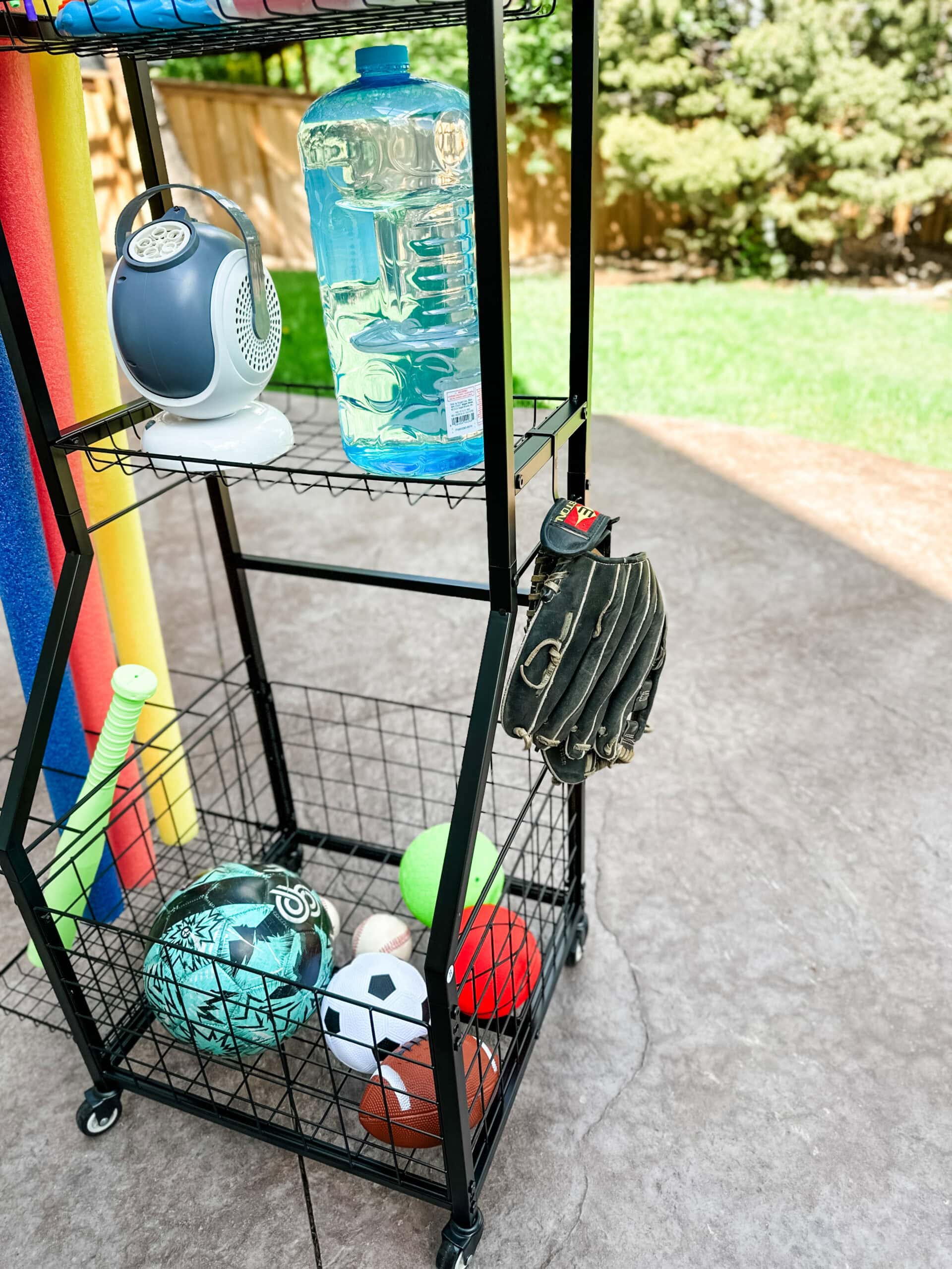 Tame the chaos of sports equipment, pool gear, and backyard toys with the coolest organizer! My friend, Laura, just grabbed it to organize her backyard a bit and said it is one of the best buys.