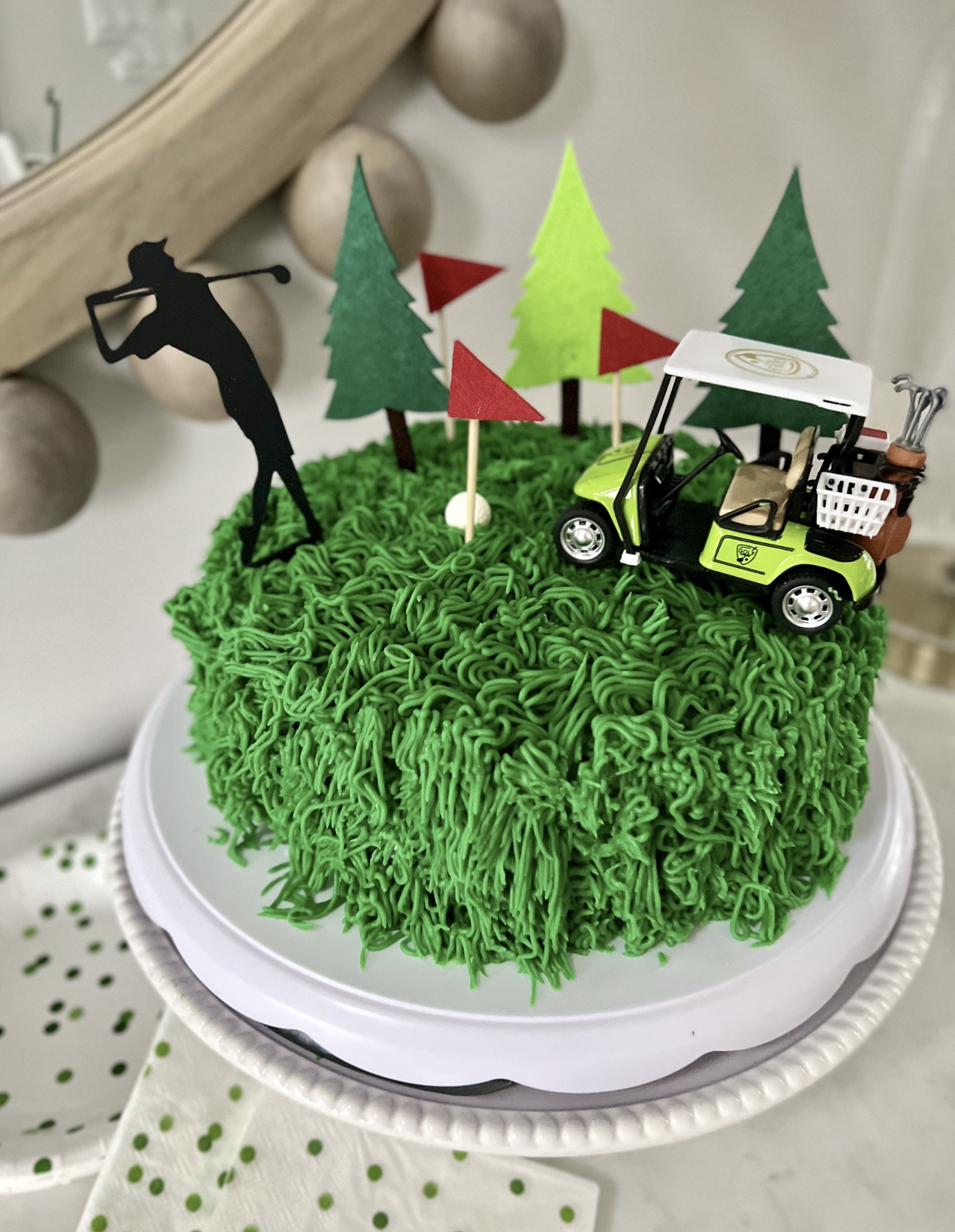 And just this week, a super easy even if it turned out really hairy golf cake. (This cake topper and the grass tip made it EASY though. You can do this!)