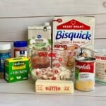 The other night I cooked a whole chicken using my favorite recipe Roast Sticky Rotisserie Style Chicken. We had plenty left over, so I thought I’d whip up one of my families FAVORITE meals – Chicken and Dumpling Casserole. (I love that I can get two or three great meals from a whole chicken!)