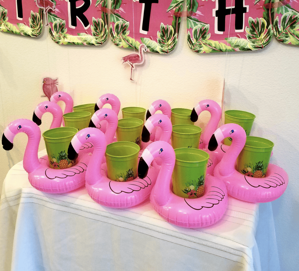 Get these inflatable drink holders before you have your next pool party – and serve your guests their poolside beverages in style! I love one mom’s idea to get all the birthday party guests their own drink holder and color-changing cup – what a fun party favor idea!