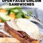 Melted gooey Provolone cheese is my favorite on these open faced sirloin steak sandwiches! If you’re feeling adventurous, sauté some onions until they are caramelized and add those to your sandwich ~ this is just divine. Mustard and mayo (either one) are great, as well as pickles if those are your thing.