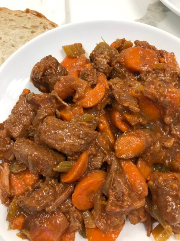 Slow and steady cooking is the key here. This helps stew meat break down and become very tender. This is one reason the crockpot is perfect for this beef stew recipe.