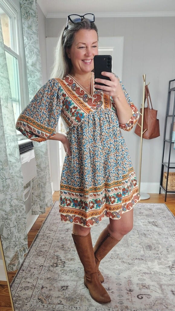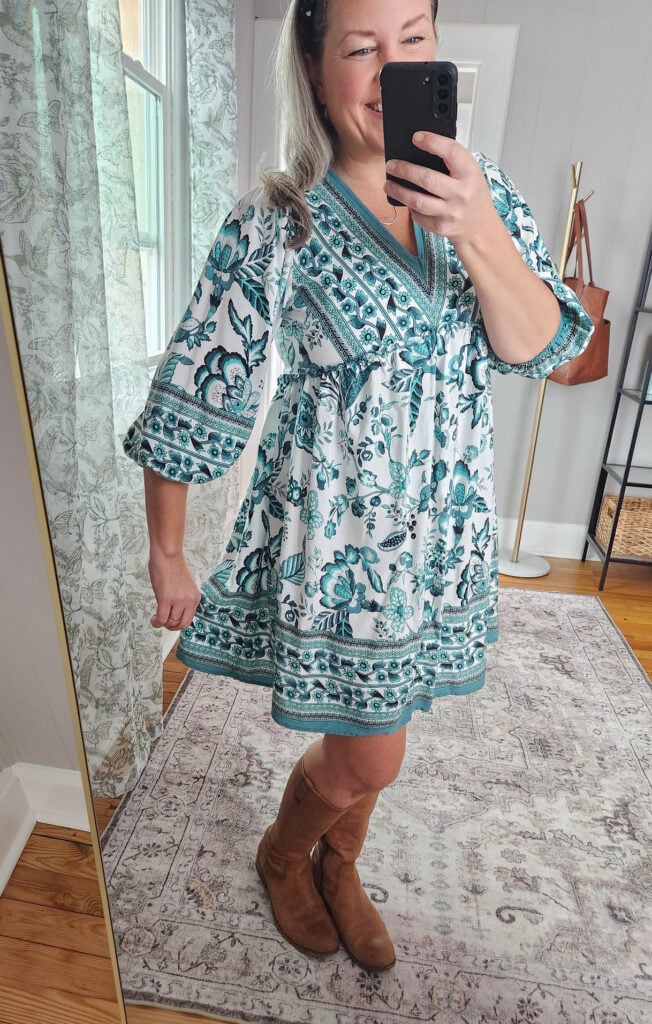 Jamie here – I got this dress in the Apricot and like it so much I ordered in the teal as well! I think it would be SO cute for country music concerts, especially with cowboy boots!