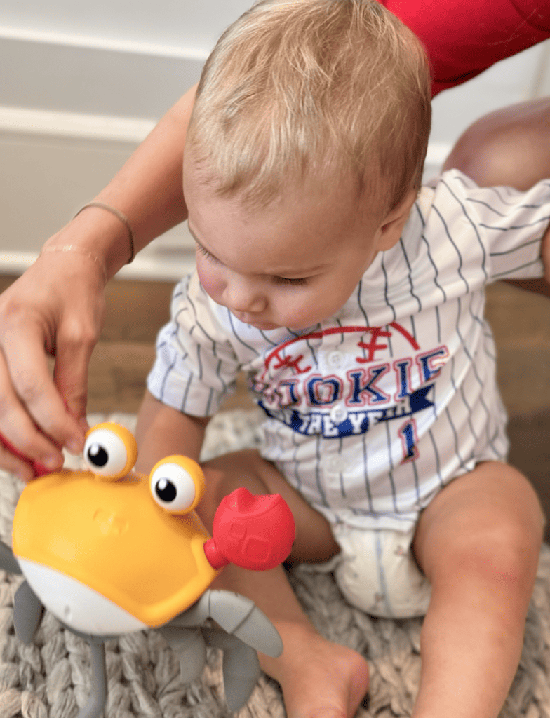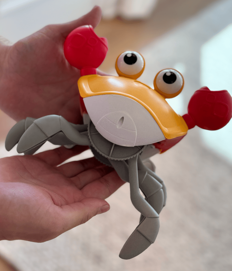 If you follow me much on Instagram stories you may know that our niece Kelley had a little boy (two years ago!) and for his first birthday th hit of the party was this cute Crawling Crab Toy For Babies. He was obsessed and we all got a kick out of it too!