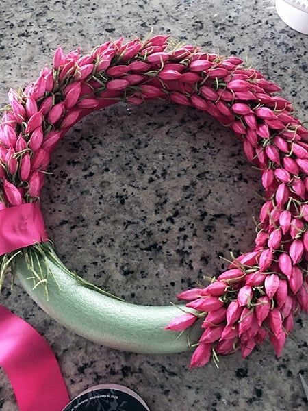 Turns out, it’s not all that hard, just time consuming. I knew I wanted this as part of my spring decor, so I decided to give it a try. It was the perfect door decor and came together amazingly.