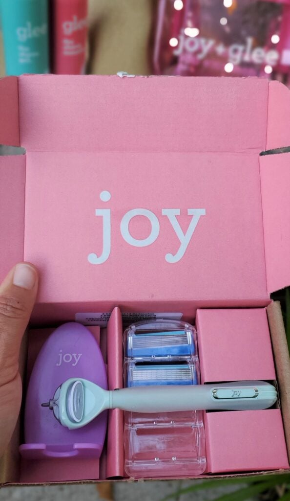 Joy+Glee is a somewhat new Gillette brand shave club specifically tailored to women’s shaving needs – with a super fun pink, purple and teal color scheme too! 🙂