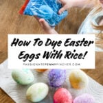 You can use rice and food coloring to dye your eggs! It is SO easy, fun, and virtually mess-free – GREAT for young kiddos!