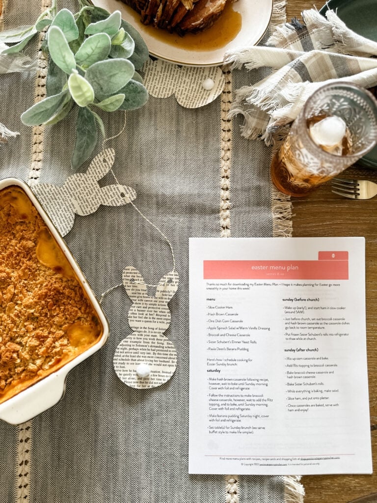 - The Easter menu plan also includes a schedule for cooking to make Easter brunch a breeze in your home.