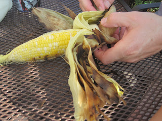 - Remove from grill. Let cool a few minutes, pull back husks, top with butter or margarine, salt and pepper and enjoy!