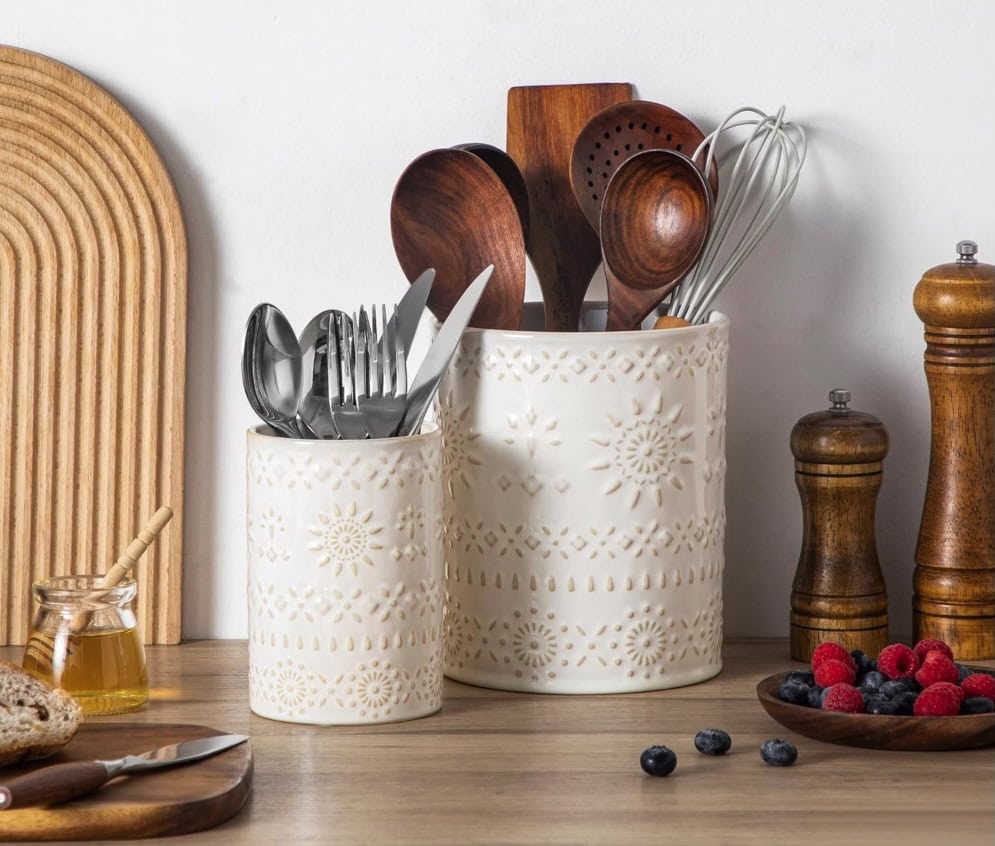 Ready to give your kitchen a functional and stylish upgrade? This 2-piece ceramic utensil holder set is 50% OFF today with the code K6XDORAA at checkout – and it’s getting fantastic reviews! These aren’t just pretty canisters either — they’re practical and can be used for a variety of purposes!