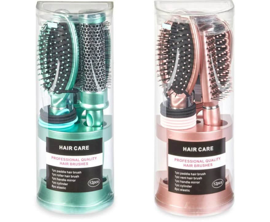 Haircare 12pc Sets with Mirror, Brushes and Elastics – $3 (Reg $5) or in Pink!
