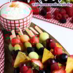 These fruit kabobs are quick to make. The dip takes less than 5 minutes and 3 ingredients to make. AND you can use any fruit you want!