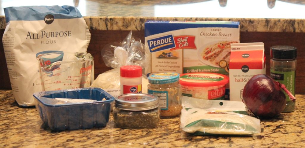- 1 container Publix or Pillsbury Pizza Dough I used the Publix brand