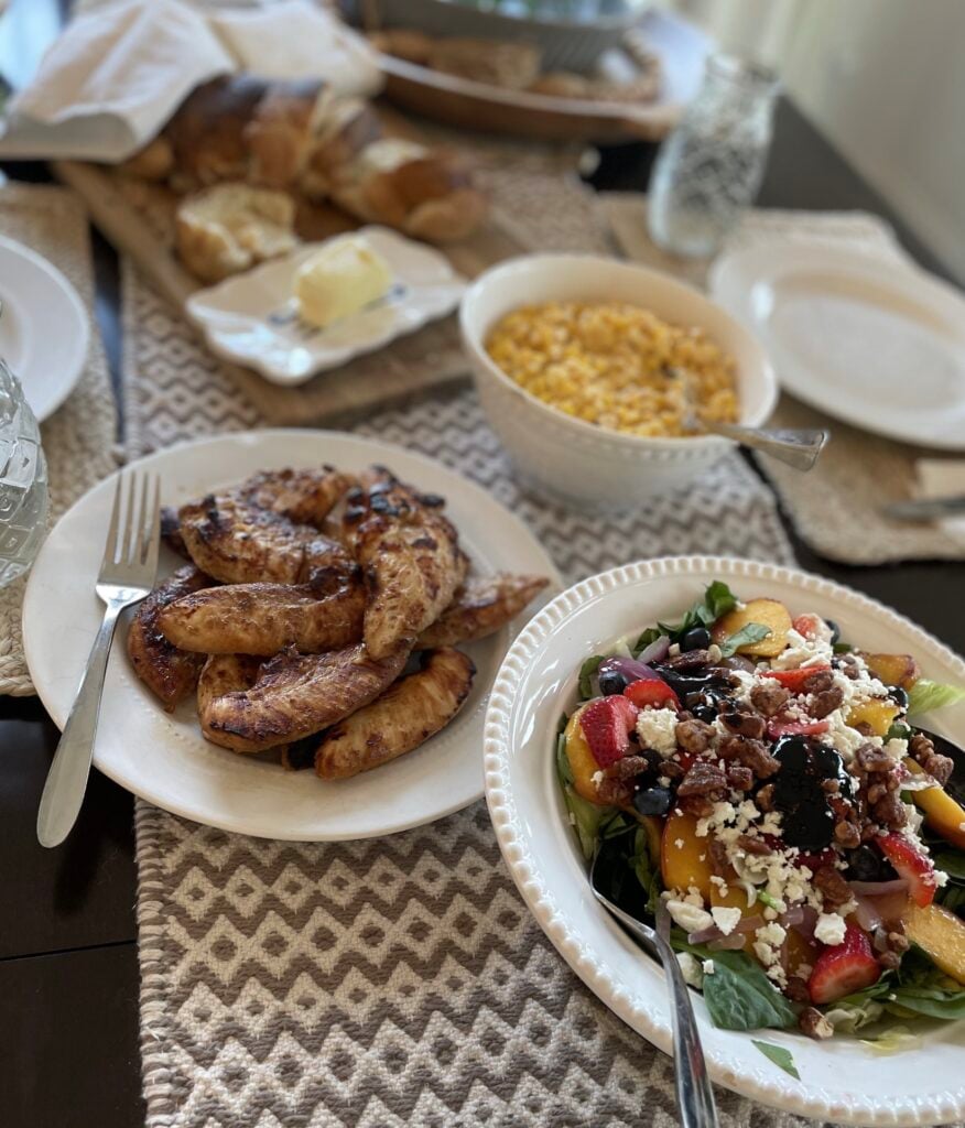 We served it with this Honey Grilled Garlic Chicken, creamed corn and homemade bread, and the most delightful dinner was done.