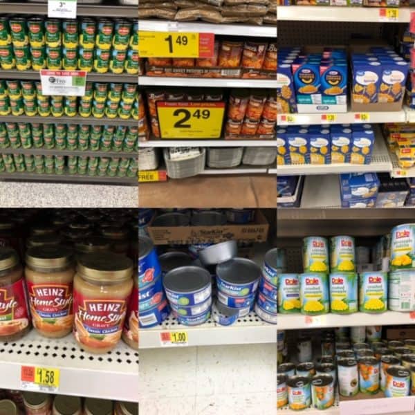 - 4 cans vegetables (Sweet peas, Green beans, Corn, other)