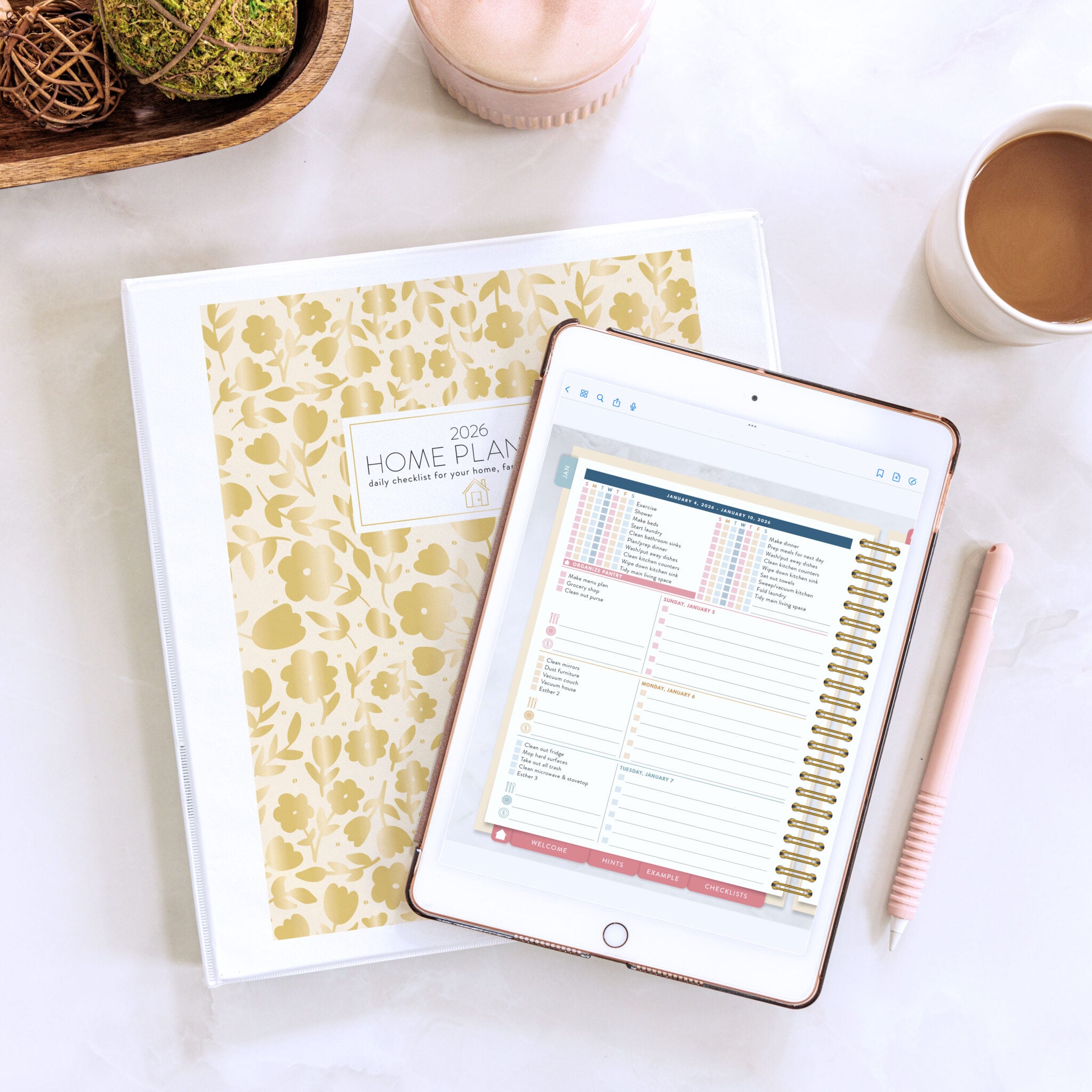Our 2026 Home Planner is actually a Planner and HOME MANAGEMENT SYSTEM that easily allows you to manage your home, care for your family, and organize your weekly schedule all in one beautiful space. The Home Planner breaks down all your cleaning, organizing, and even navigating your budget into simple, achievable tasks each day.Â