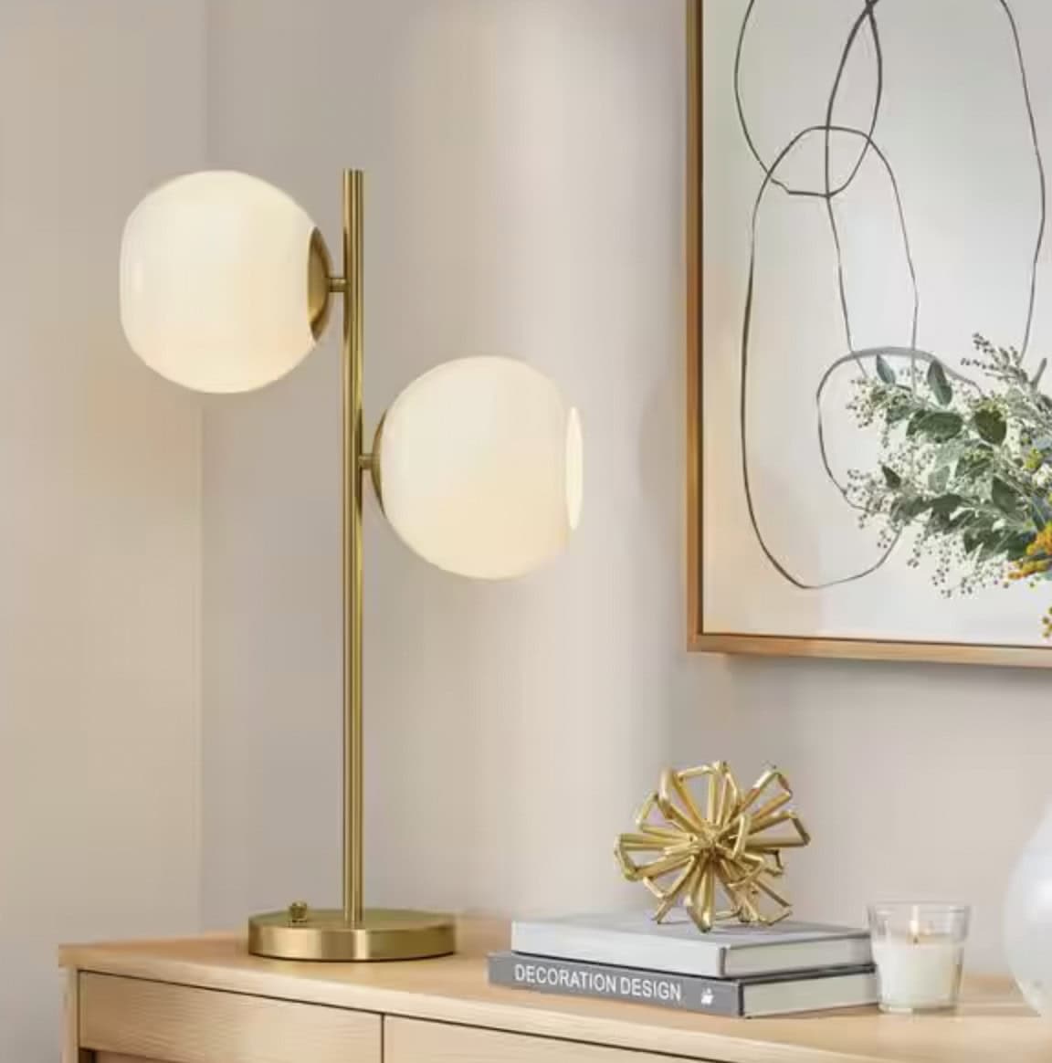 Vista Heights 24.5 in. 2 Light Aged Brass Indoor Table Lamp With White Glass Shade – $14.99 (Reg. $60)