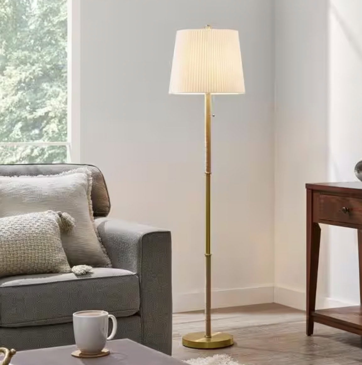 Selatir 60 in. Steel Aged Brass Standard Indoor Floor Lamp with White Fabric Shade – $25.99 (Reg. $100)