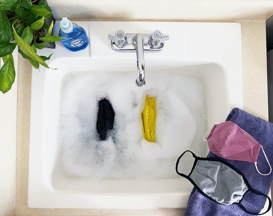 There are a few effective ways for washing face masks – here are the top 3 most widely recommended! Before washing your cloth mask, make sure to remove any paper or other face mask filters. (Do not wash disposable paper surgical masks!)