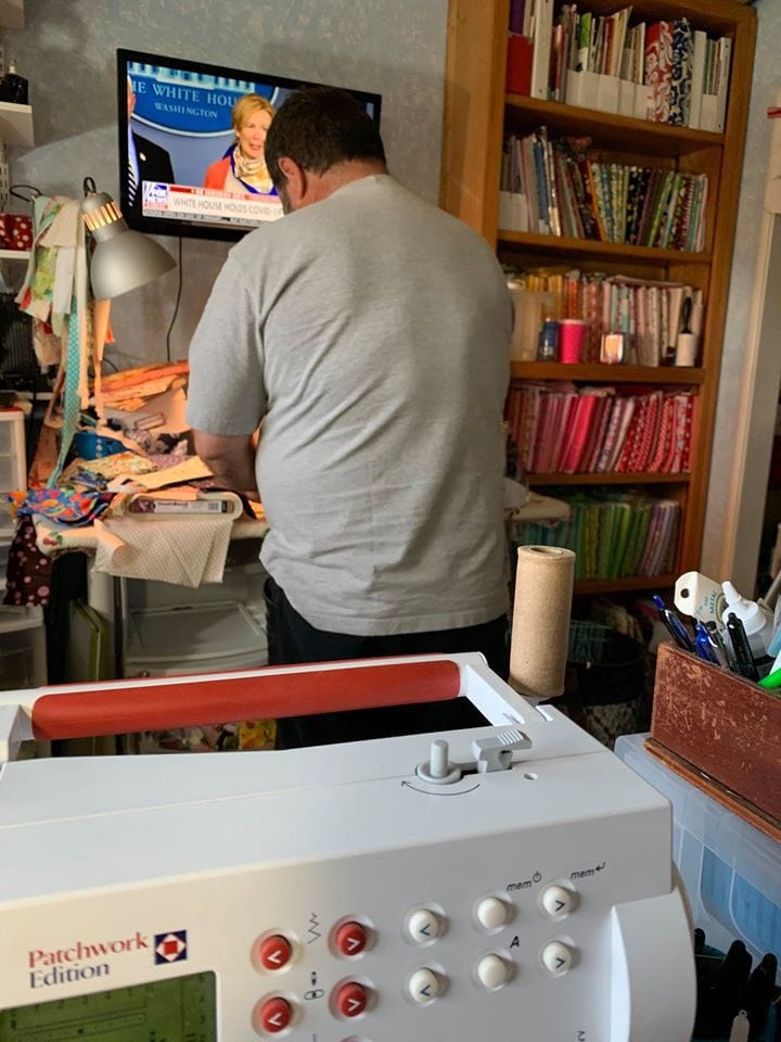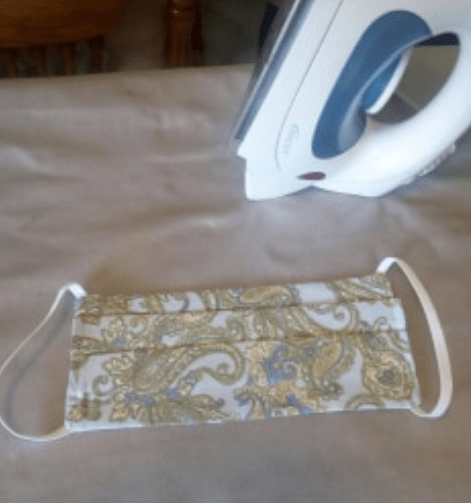 We have some AMAZING readers who are letting us share their DIY face mask pictures – they’ve been so hard at work sewing up a storm! This is reader Cheryl’s husband, ironing all the finished masks. 🙂