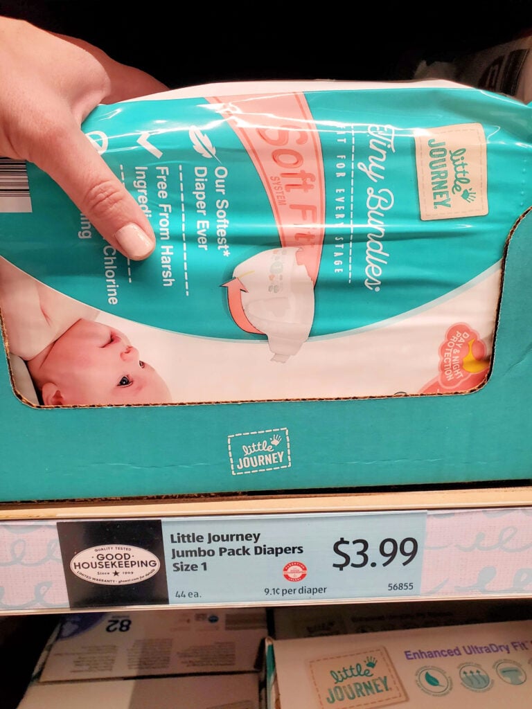 Trust me. Try the Aldi Brand Diapers. You ahve nothing to lose with their satisfaction guarantee – and a 44 pack i sjust $3.99! That’s under 10¢ per diaper. Plus they’re backed byt he Good Housekeeping seal of approval. Check out our Cheap Diaper Price Cheat Sheet to see where to get the cheapest diapers at other stores too 🙂