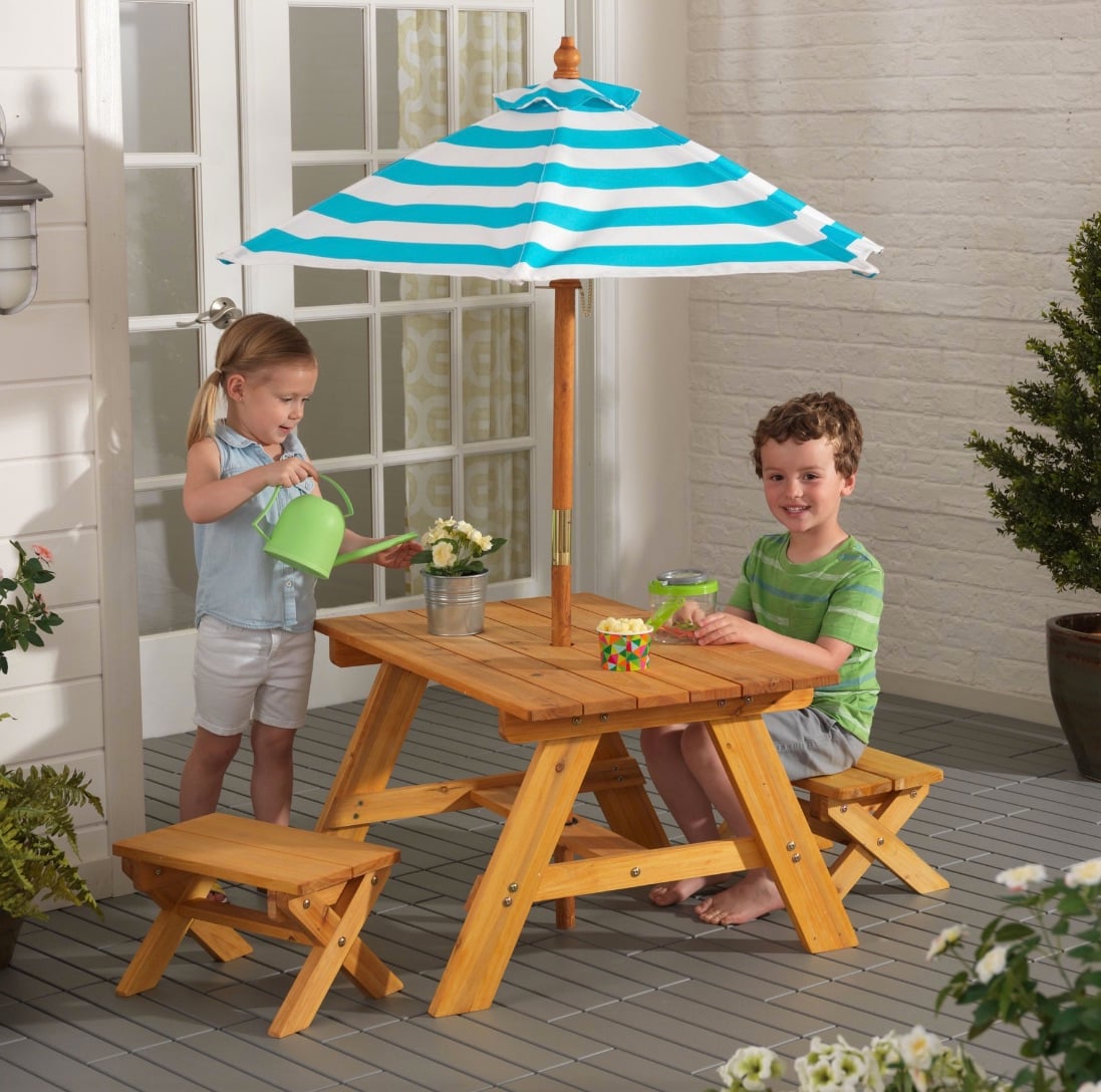 KidKraft Outdoor Wooden Table & Bench Set with Umbrella – $100.79 (reg. $139.99)