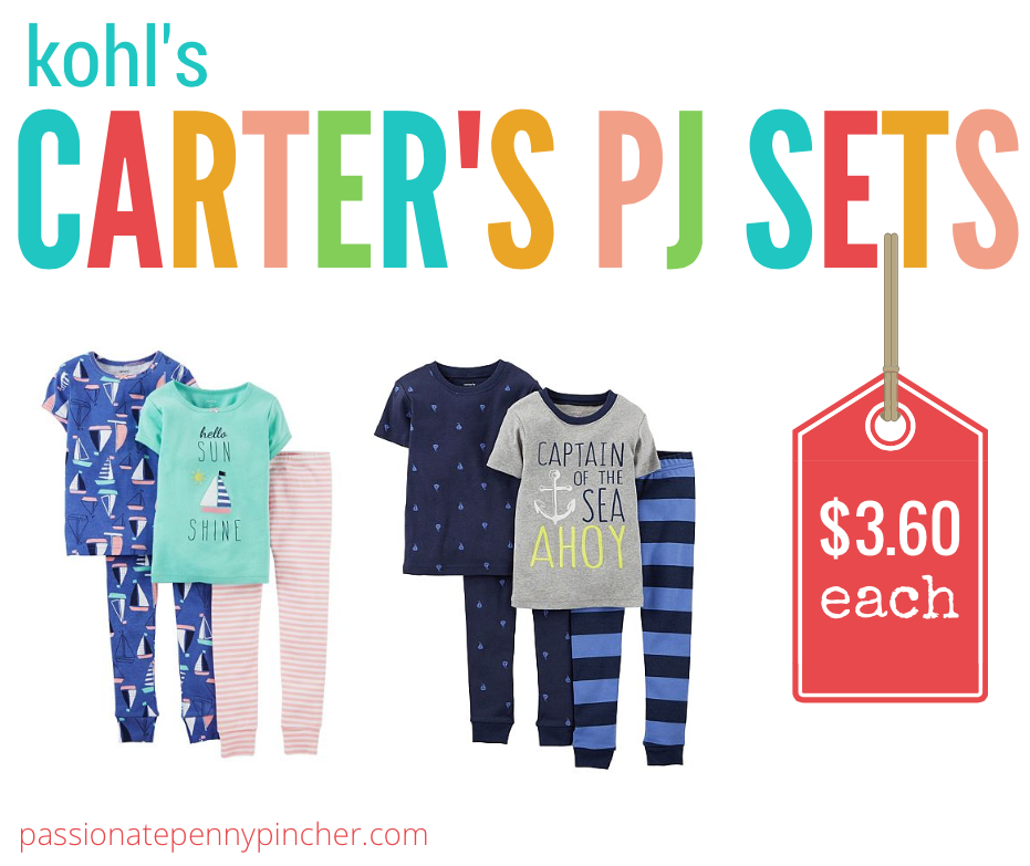 Here are a few more great deals you can get at Kohl’s! You can use the codes below to get 2-packs of Carter’s baby and toddler pajamas for $7.19 – that’s $3.60 per pajama set! Here’s how to get the deal: