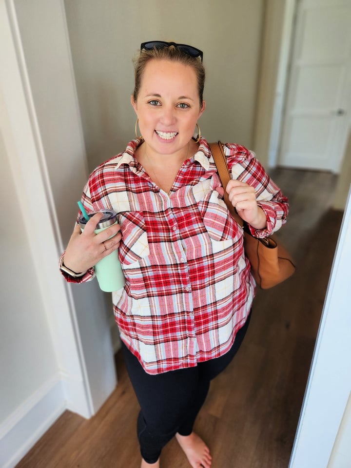 This flannel’s a great staple that you can pair well with jeans or leggings and is warm enough but not TOO warm. I like the medium length because it doesn’t catch on my butt – I don’t have to worry about that way. The only concern is if you’re bustier you might want to pair it with a cami because it may gap. (Or a safety pin can solve that problem!)