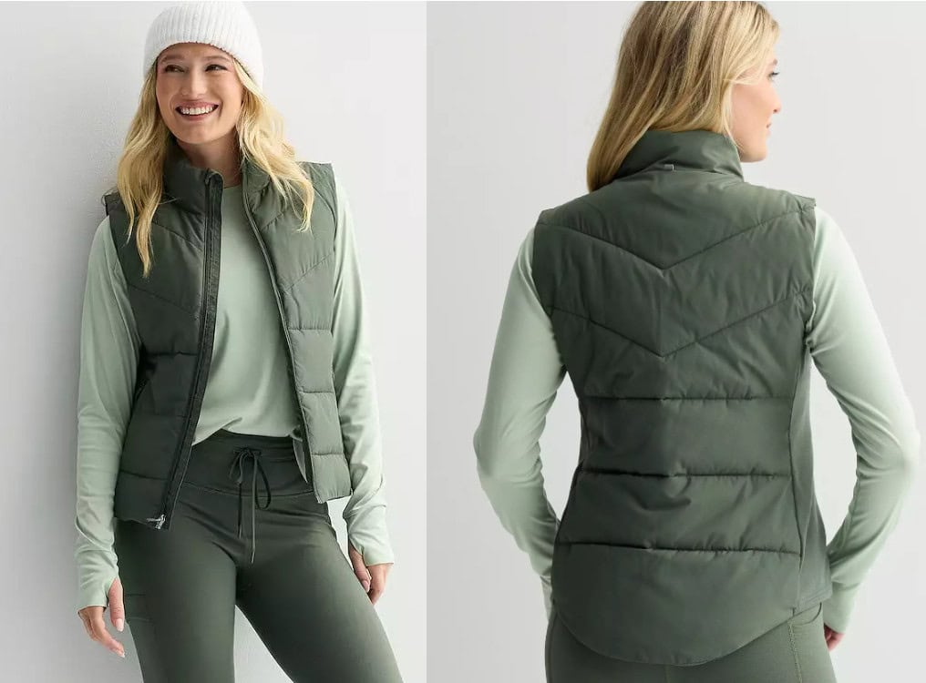 And layer on this cute puffer vest for a warm option that’s not too bulky!