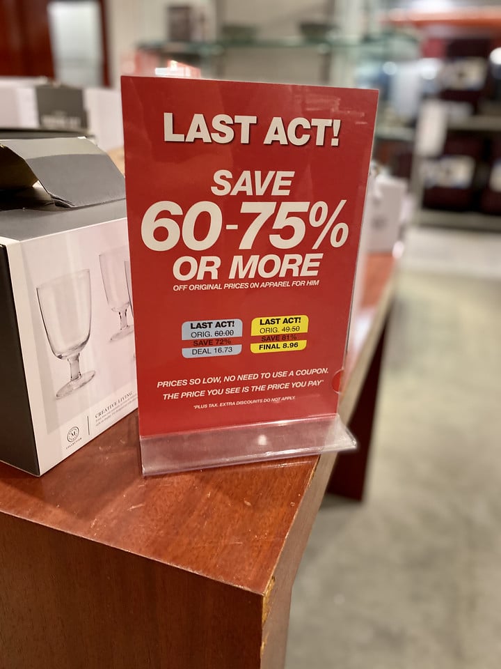 In stores you’ll notice that the Last Act clearance tags are different colors. Here’s what that means!