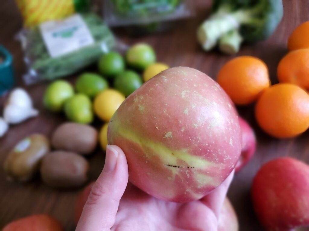 The packaging was minimal – just a fluffy foam pad surrounding the entire inside of the box – but enough to keep things protected. The apples and oranges, lemons and limes all looked good – but I did have one “ugly” apple with a scar. None of them were polished to a grocery store shine.