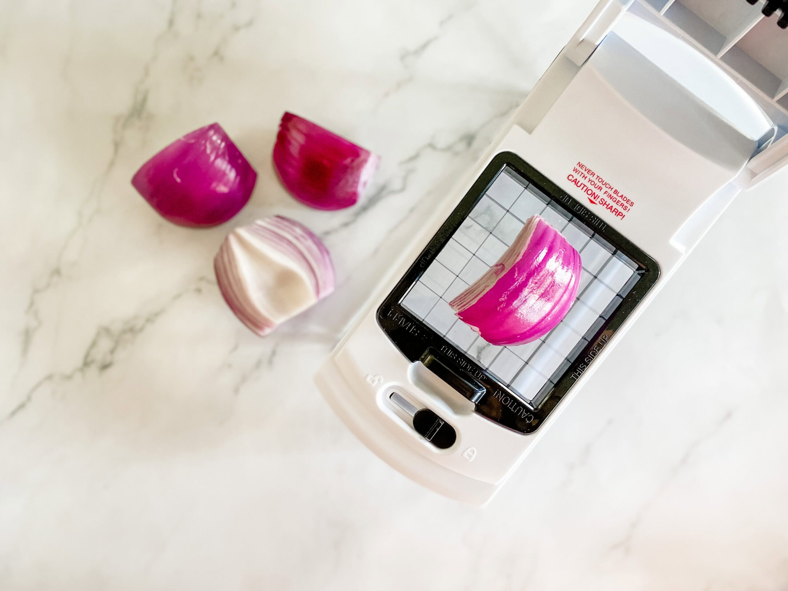 If you’re looking to purchase a highly rated manual food chopper, we also tried out a popular brand. It made chopping a TON of vegetables SO EASY!