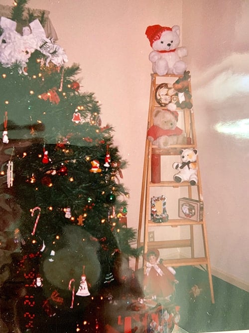 We lived without any furniture for 3 years, and it really wasn’t until our current house that we’ve spent money on furniture at all. (See the ladder in the Christmas tree pic? That’s because someone gave us Christmas decorations but we didn’t have anything to put it on! The following year for Christmas when I opened my ski coat we had wallpapered the dining room but still couldn’t afford furniture ~ until we got the dining room set James’s grandparents had. We just sold that a month ago after waiting 23 years to buy our own!)