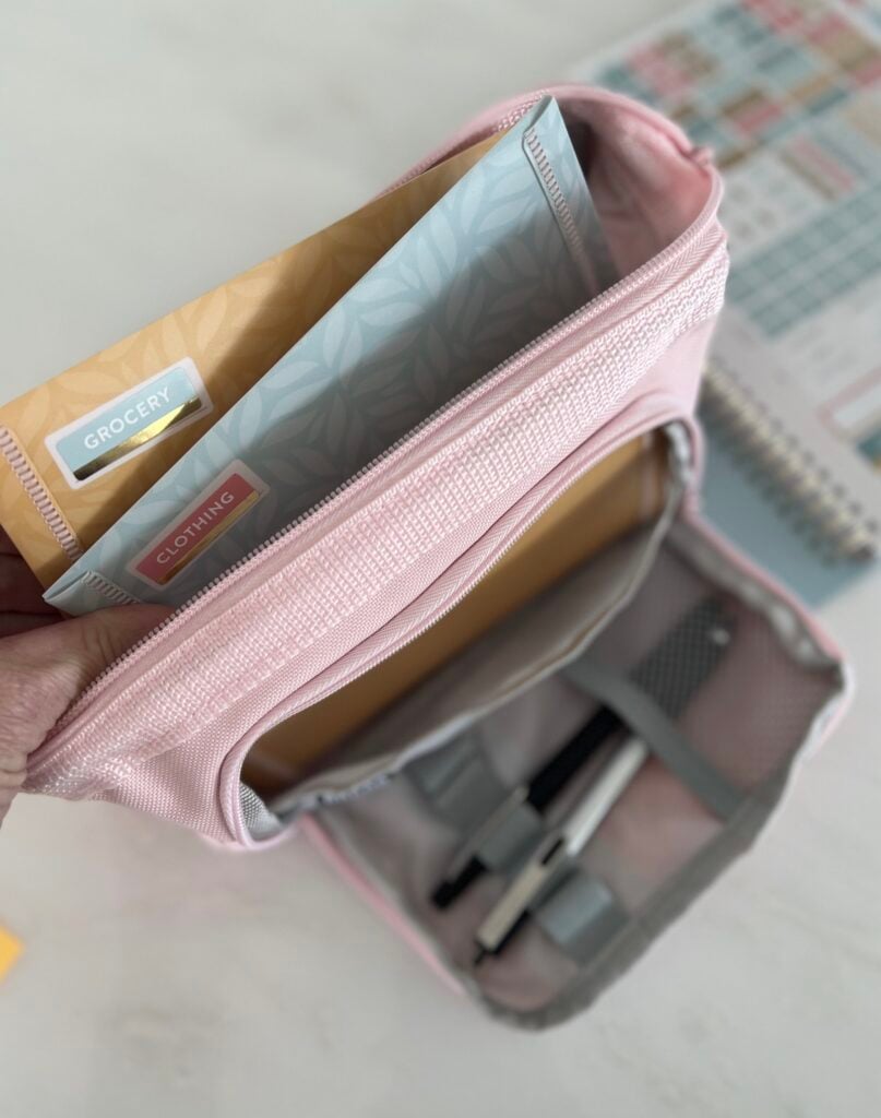 If you’re looking for easy ways to keep all your Money Planner supplies together, for under $10-$15 this might be worth it (or even check the Dollar Tree for a small canvas bag. That would totally work too!)