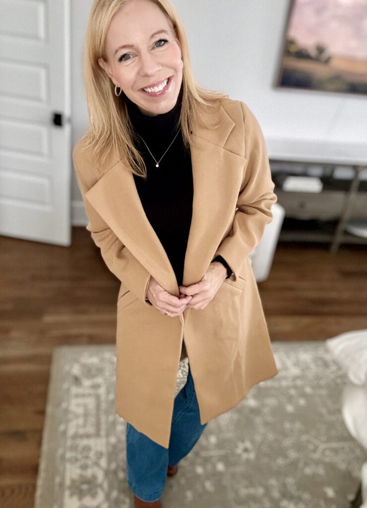 Looking for a great dressier coat to wear during winter? This Amazon winter coat is perfect, and right now the price is right ~ it just dropped to under $50! I’m wearing a size medium and it fits true to size, is super warm, and I love the color.
