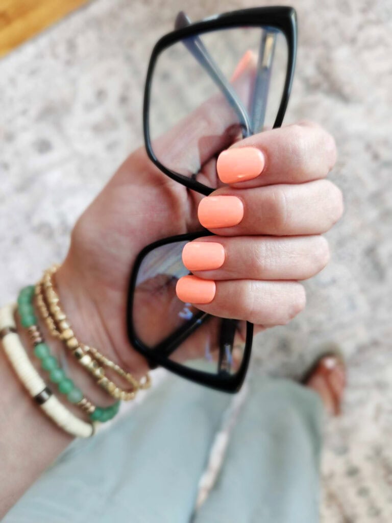 Oh my stars, I’m so excited to tell you about these! Jamie here, I’ve had my nails done 5-6 times in the last couple of years due to weddings and special events. A couple of times, I also had my daughter-in-law put fake nails on me with glue (She’s a professional). They always look sooooo good…. until it’s time to remove them. Whether they’ve been drilled off, soaked off, or carefully popped off, I always have COMPLETELY ruined nails at the end. Sometimes chunks come out of my nails, and at the very least, a papery layer pulls away, leaving my nails pitiful and thin, and torn.