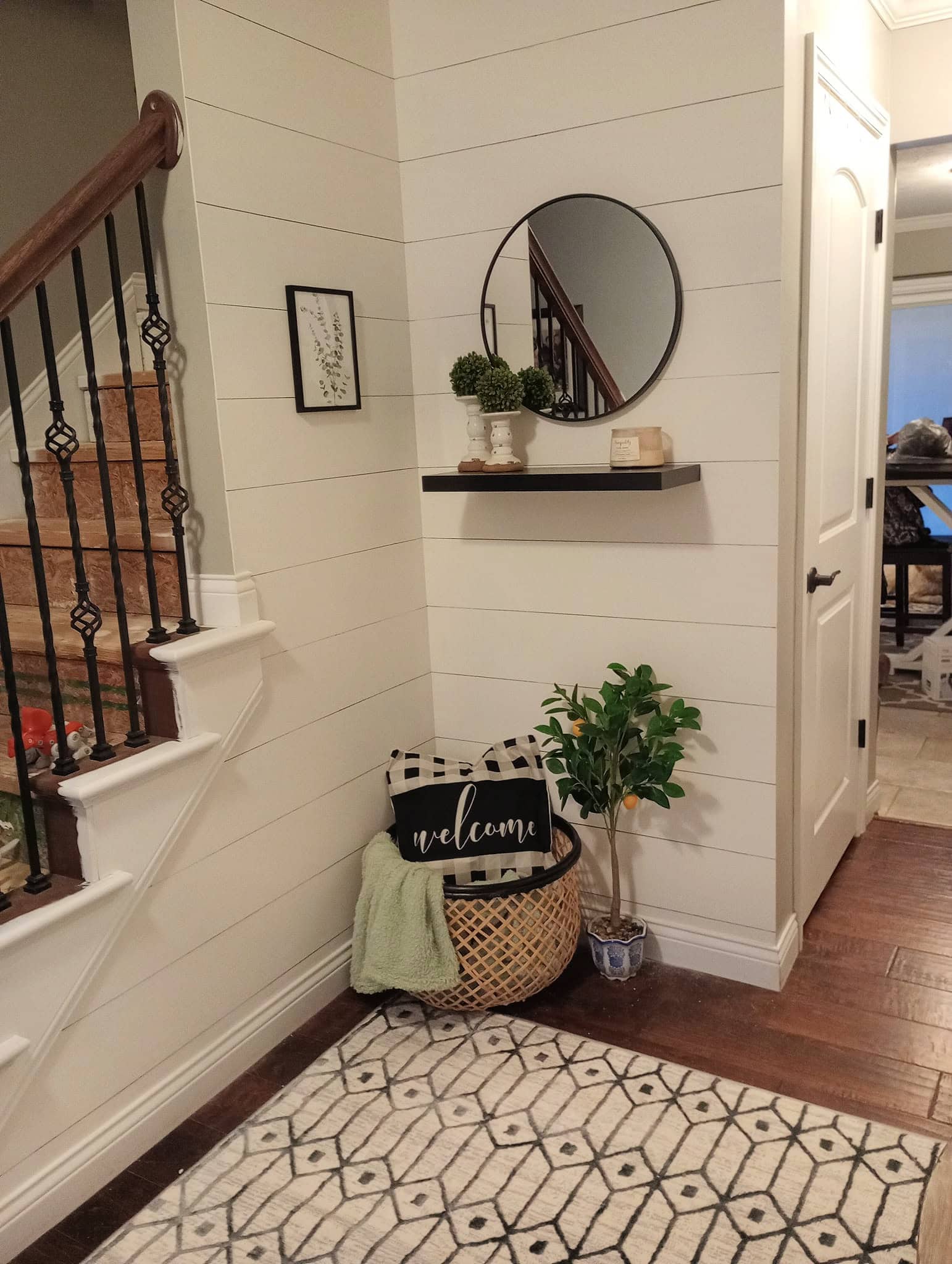 Have you ever wanted to give your space a little makeover in the easiest possible way? Reader Lori surprised the pants off of us when she posted this before and after shiplap project she did in her foyer!