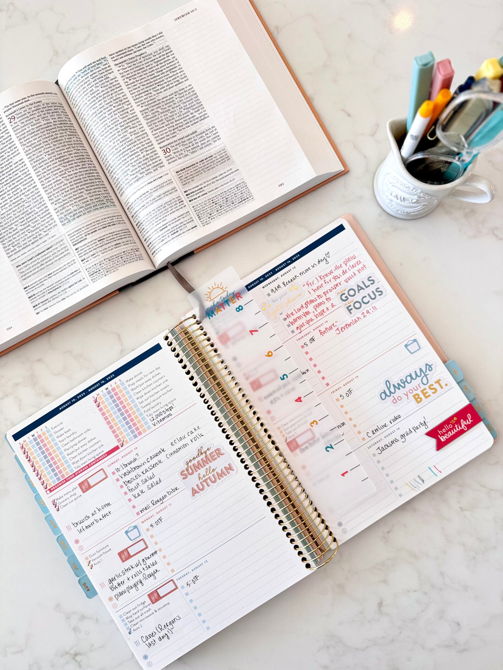 She wanted to just grab one on Amazon, but since Bibles are a little more personal (I’ve had my same Life Application one for over 30 years!), we made a quick trip to the bookstore to compare a few options. We ended up with these two ~ she took the smaller one and I took the larger one to have to use in my Home Planner corner, and after testing them out we’d both highly recommend!