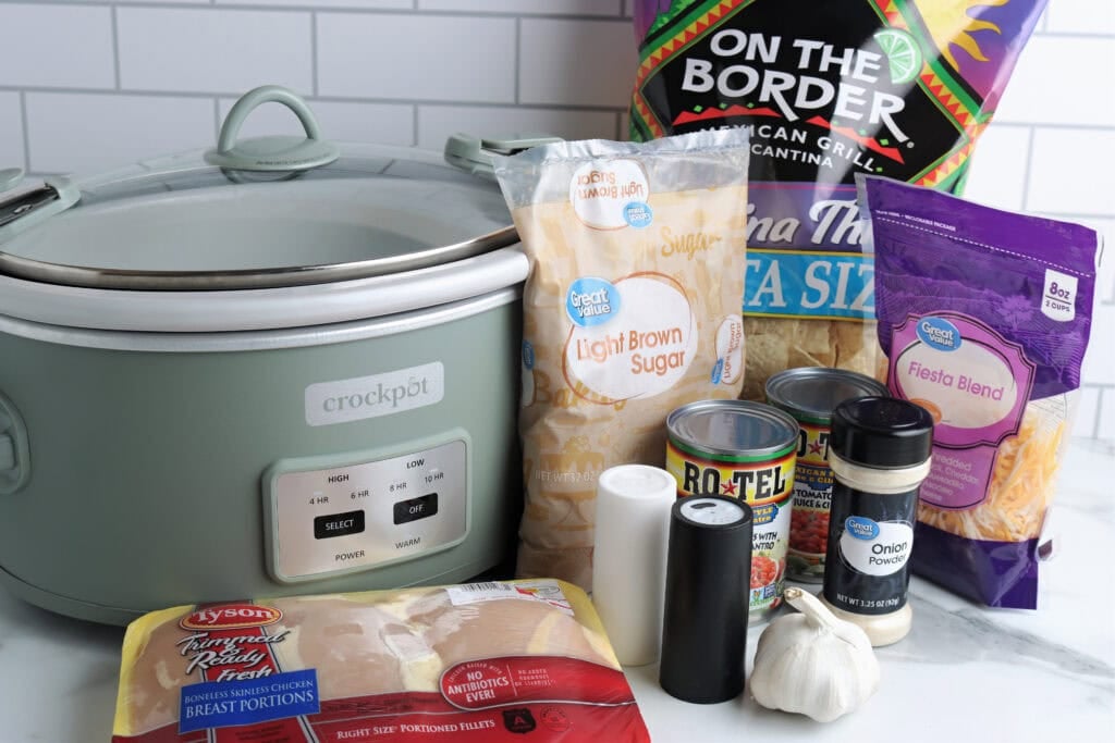 - Place chicken in crockpot and add Rotel mixture on top.