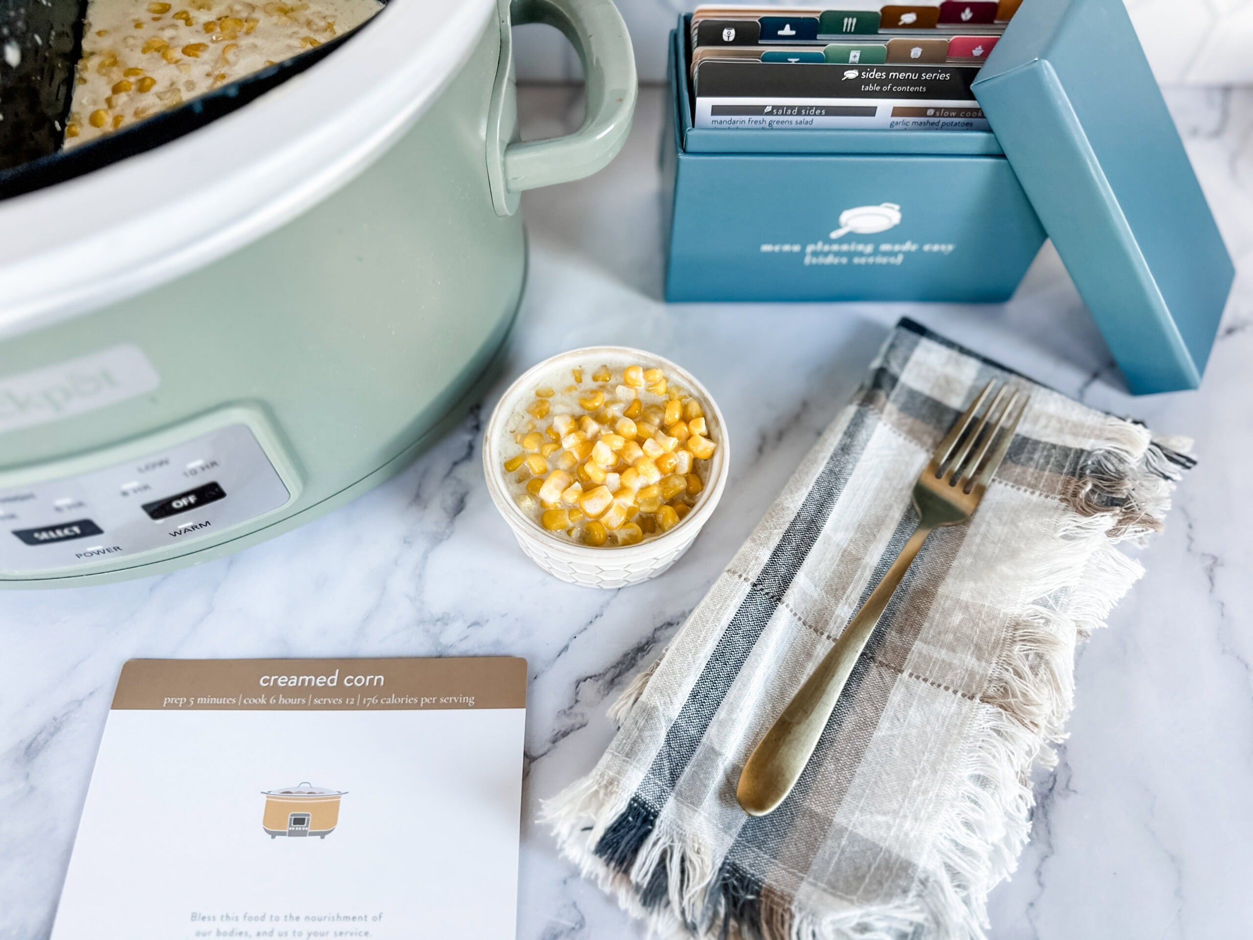 My family LOVES creamed corn, especially on Thanksgiving! It is a holiday and cold weather staple in our home, but with all the things to juggle in the kitchen, the recipe has got to be easy. Enter: slow cooker creamed corn!