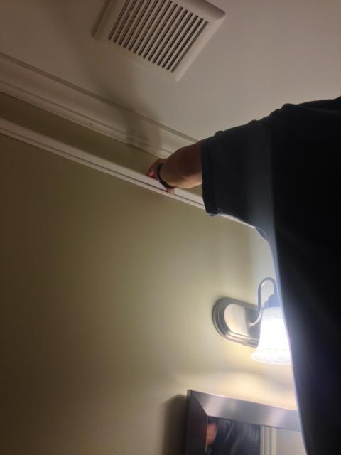 Here’s the before picture of the bathroom before he started (I was in a hurry and just snapped these with my iPhone, sorry they’re pretty blurry but you get the idea!).